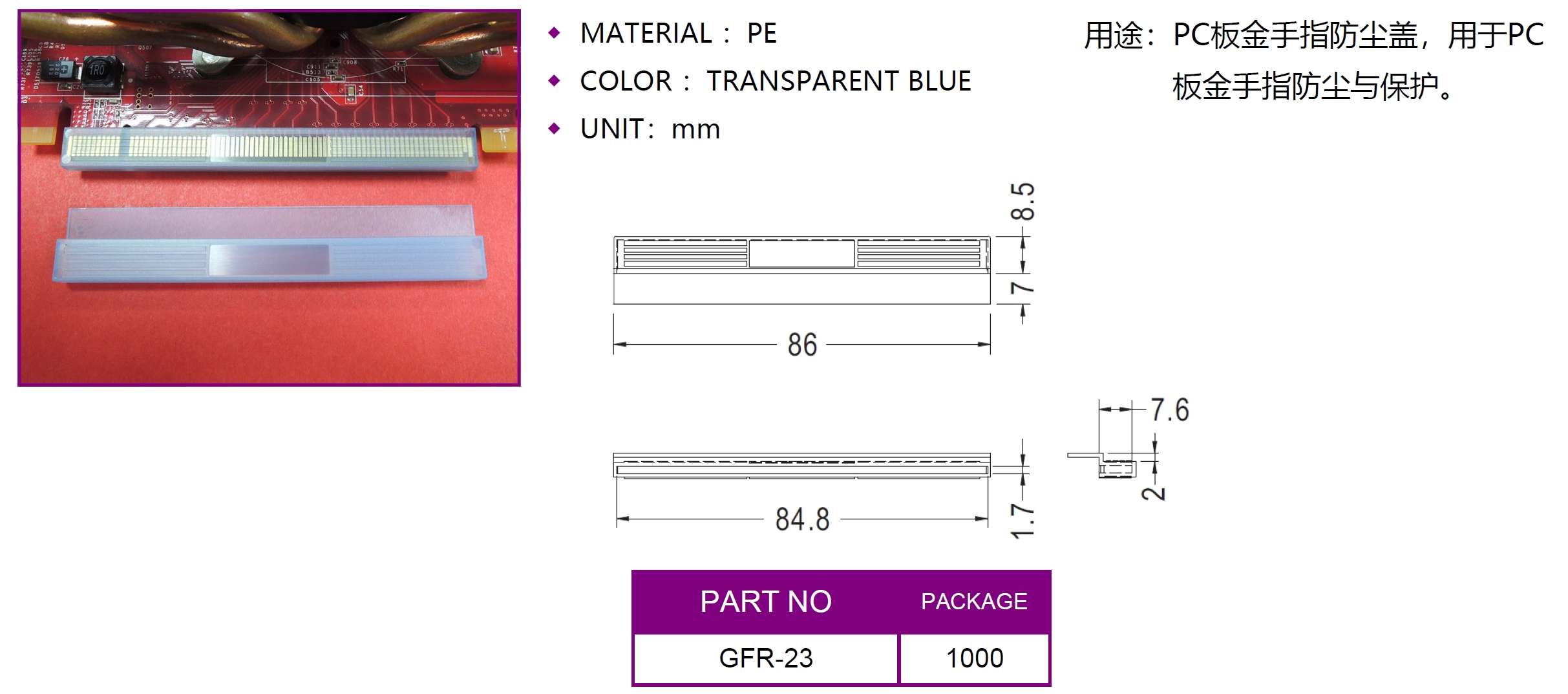 - 上一篇:PC板金手指防塵蓋 GFR-19 GFR-20