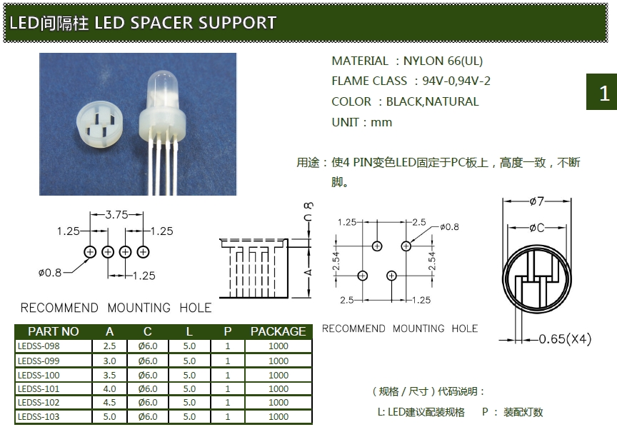 LED間隔柱LEDSS-100,可將4pin變色LED燈固定在PCB板上,高度一致,不斷腳。