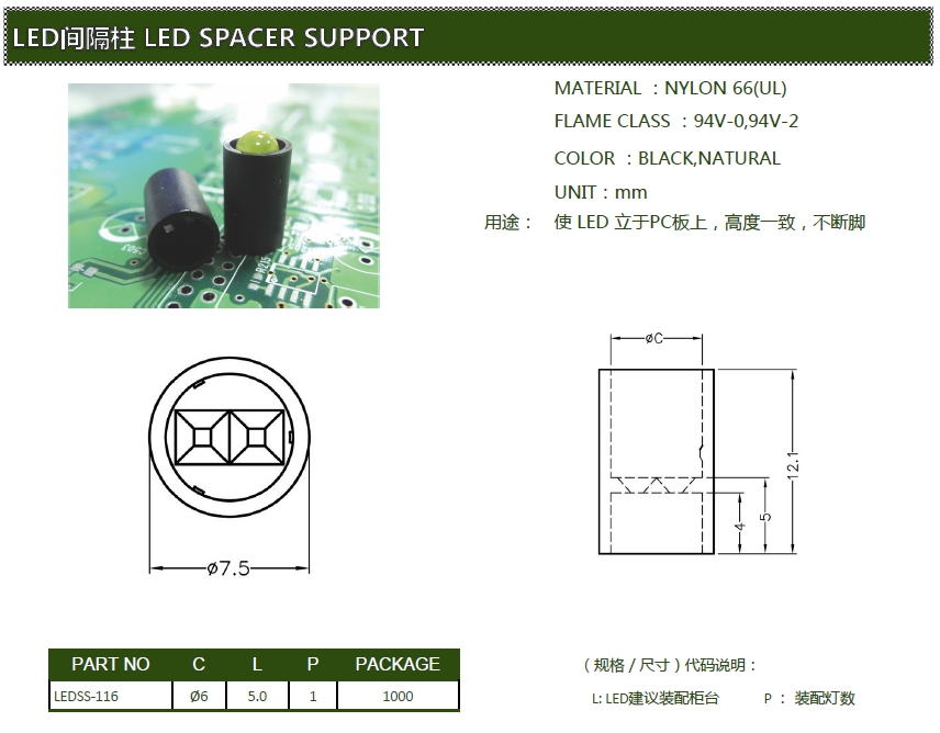 LED間隔柱LEDSS-116,使LED燈固定在PCB板上,高度一致,不斷腳。