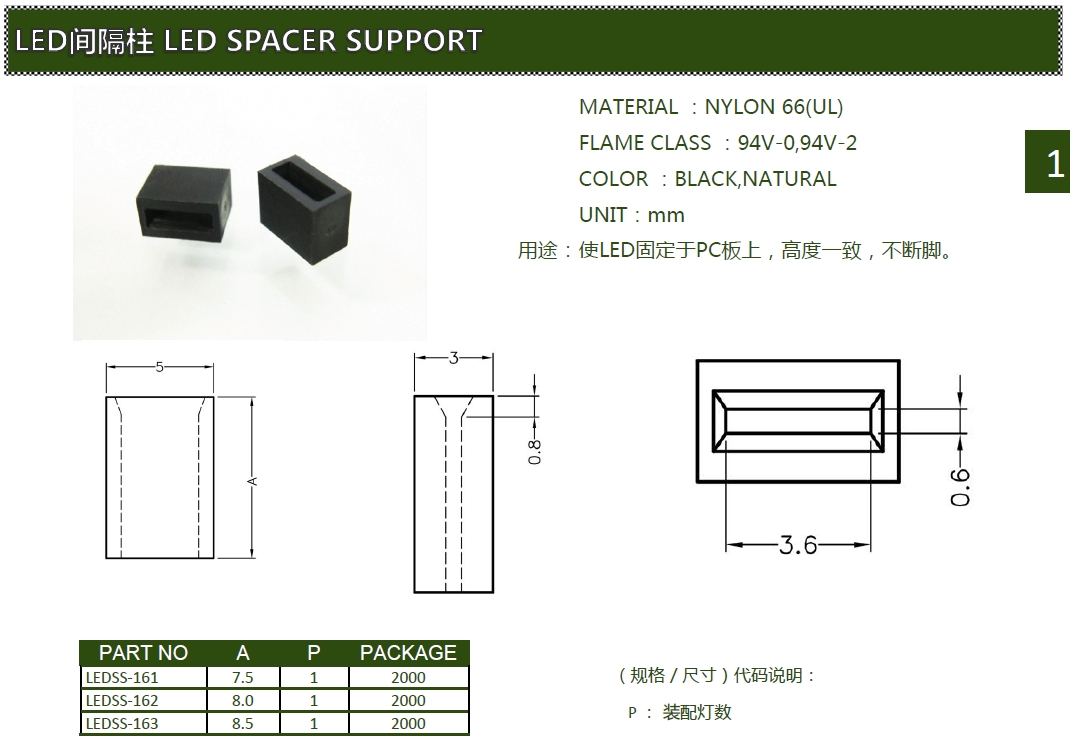 LED間隔柱LEDSS-163,使LED固定在PCB板上,高度一致,不斷腳。