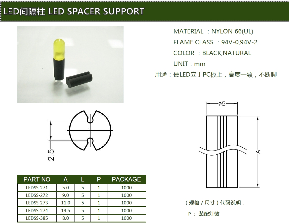 - 英文名稱:LED Spacer Support
