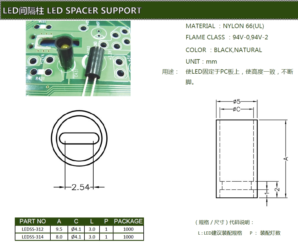 LED間隔柱LEDSS-314,保護?3mm的LED燈柱立于PCB板上,使LED燈柱高度一致,不斷腳,不漏光。