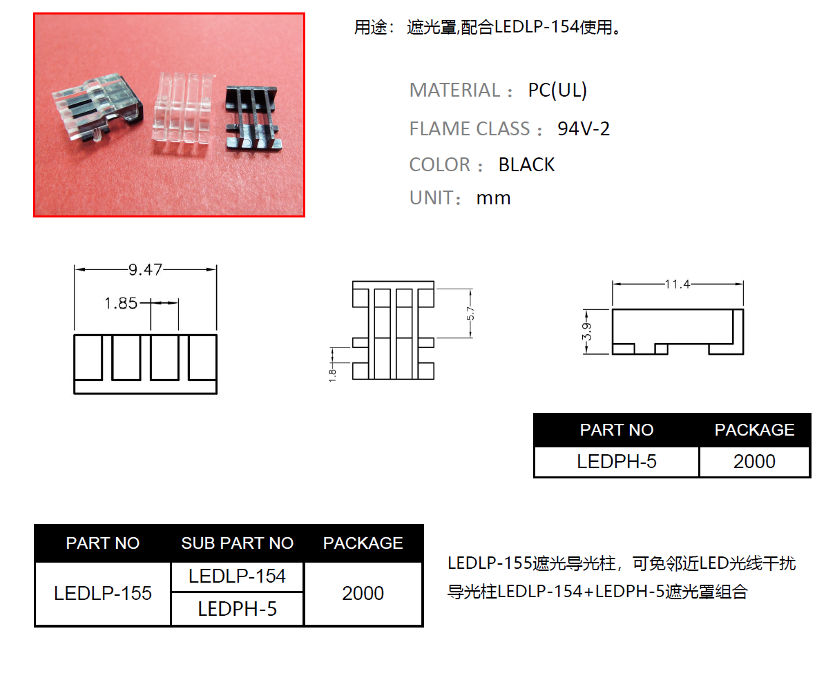 遮蔽導光柱,避免鄰近LED光線干擾,搭配LEDLP-154使用。
