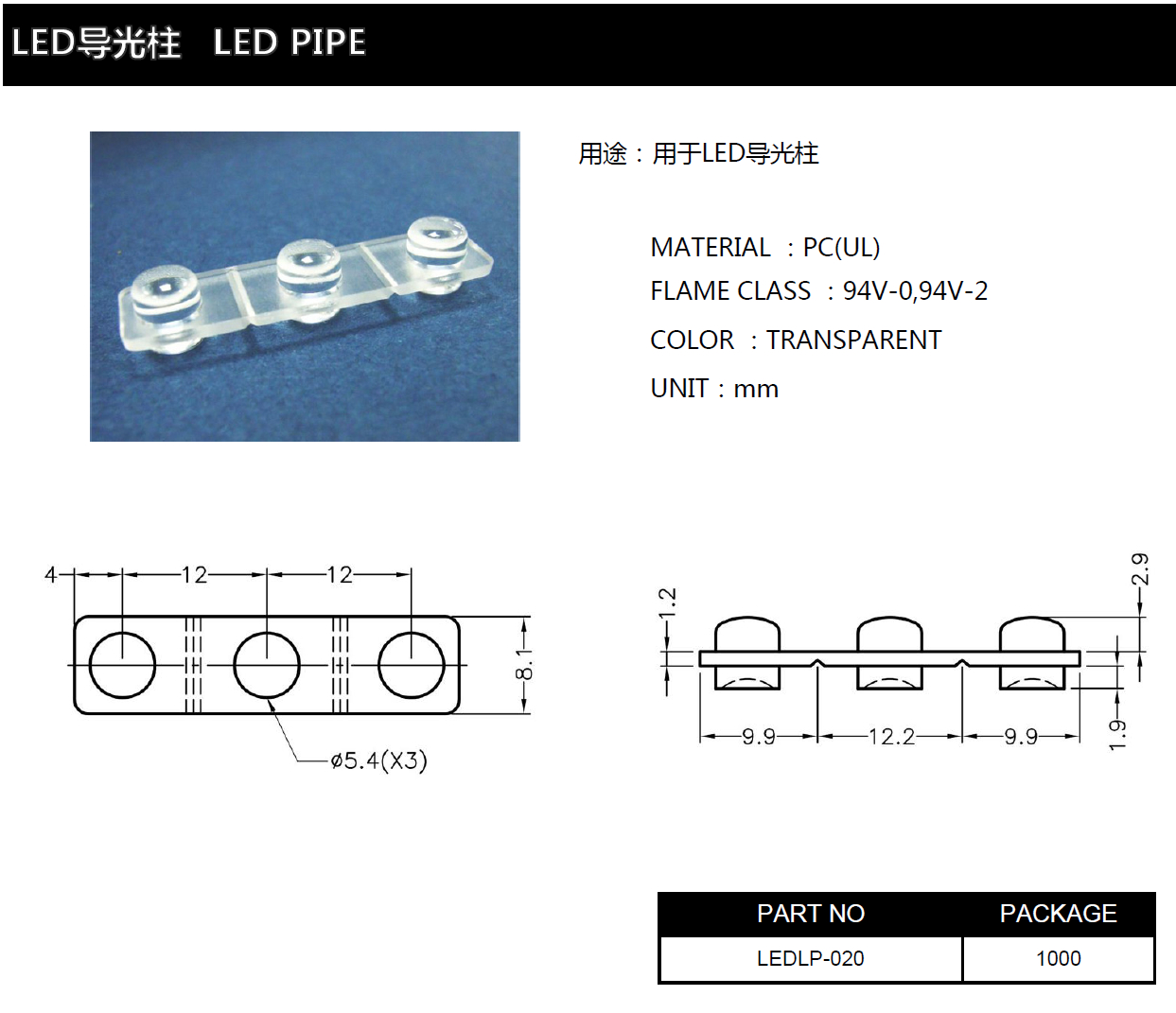 我們主要有產品有LED導光柱,也稱PC導光柱,導光柱,LED導光罩,LED導光帽,Light Pipe,導光蓋我們是PC導光柱生產廠家,LED導光柱批發,透光柱,導光條,導光棒等。