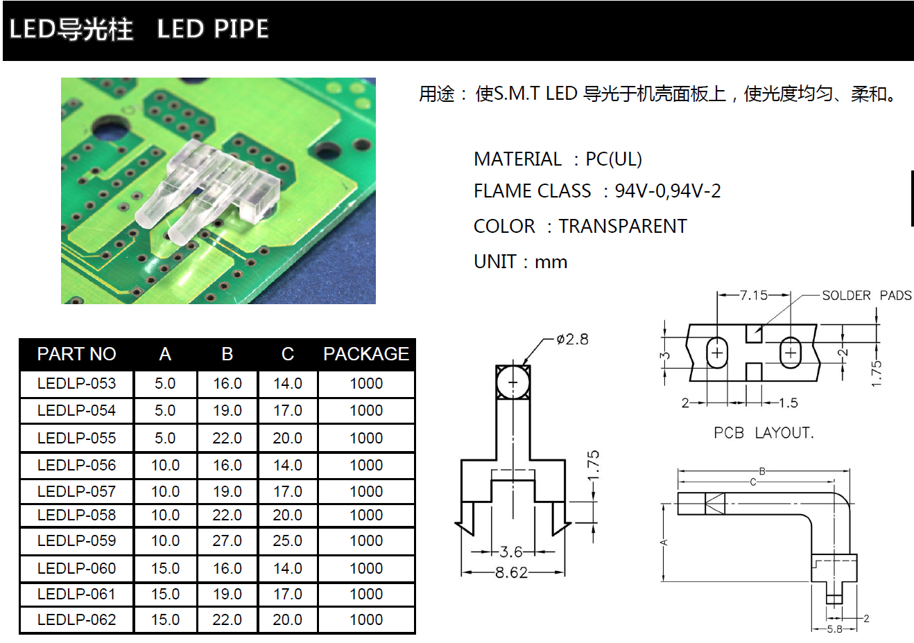 我們主要有產品有LED導光柱,也稱PC導光柱,導光柱,LED導光罩,LED導光帽,Light Pipe,導光蓋我們是PC導光柱生產廠家,LED導光柱批發,透光柱,導光條,導光棒等。