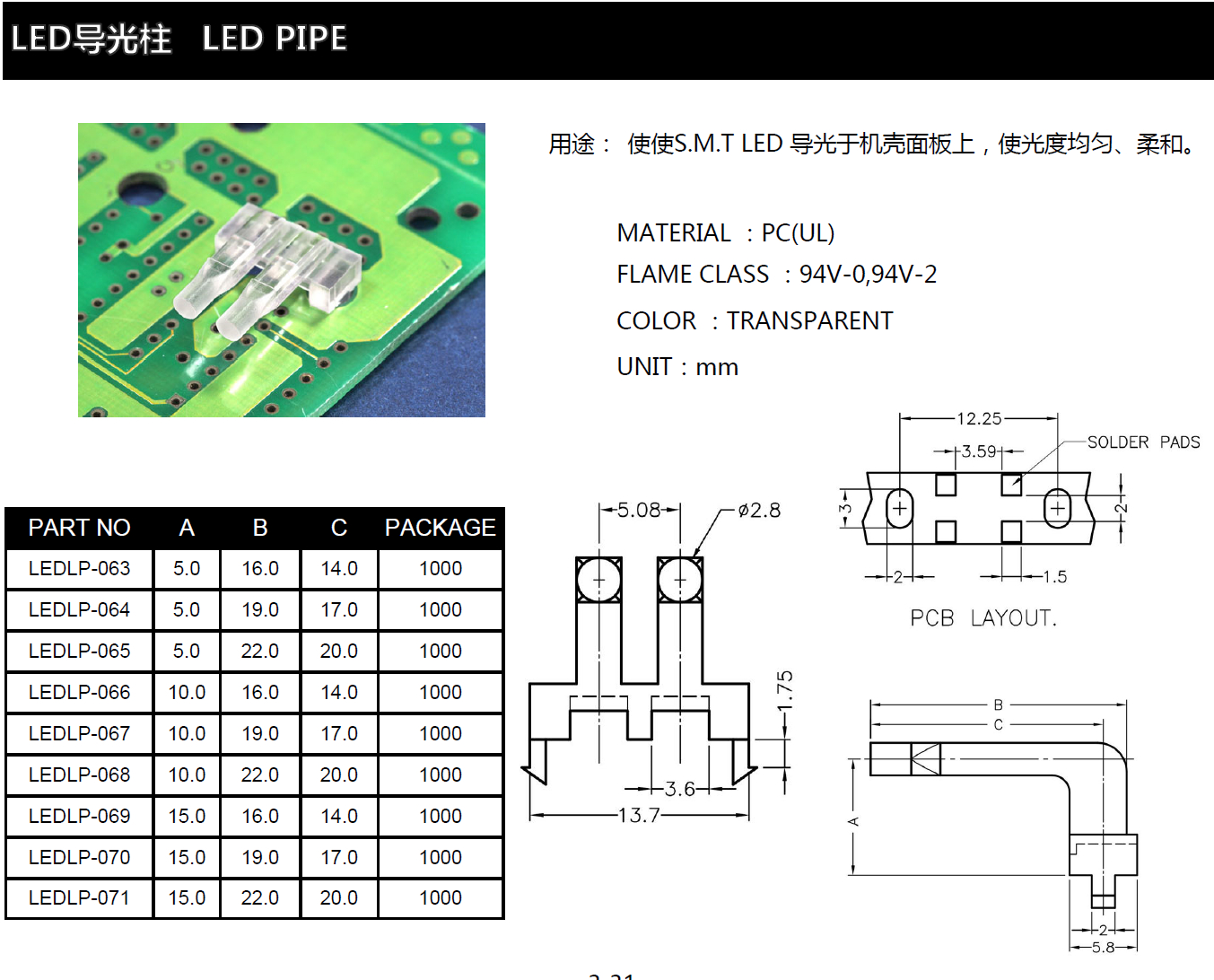 LED導光柱LEDLP-066,將S.M.T LED燈柱導光到機箱面板上,使S.M.T LED燈柱亮度均勻、柔和。