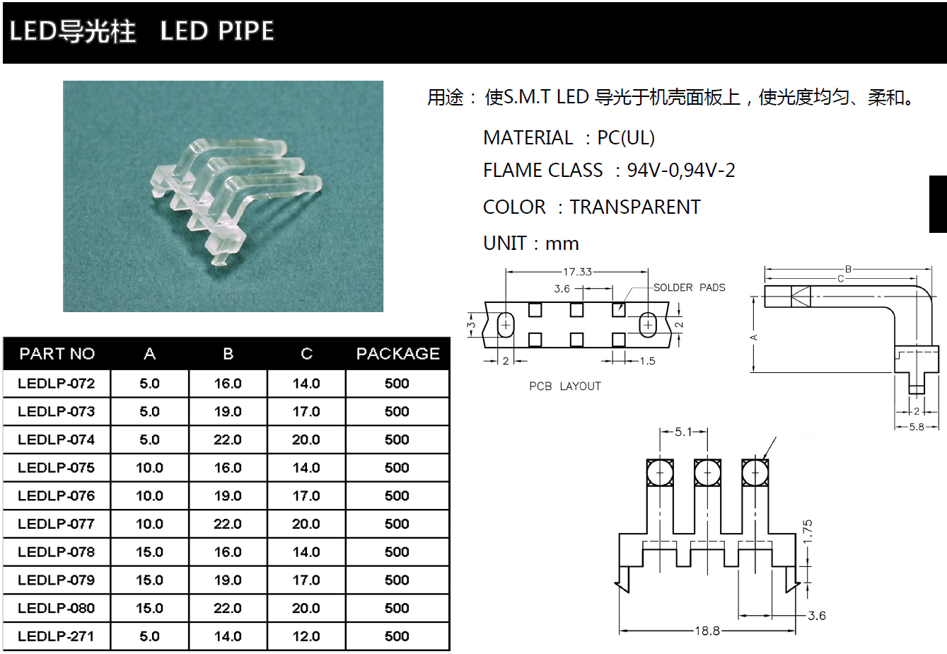 LED導光柱LEDLP-079,將S.M.T LED燈柱導光到機箱面板上,使S.M.T LED燈柱亮度均勻、柔和。