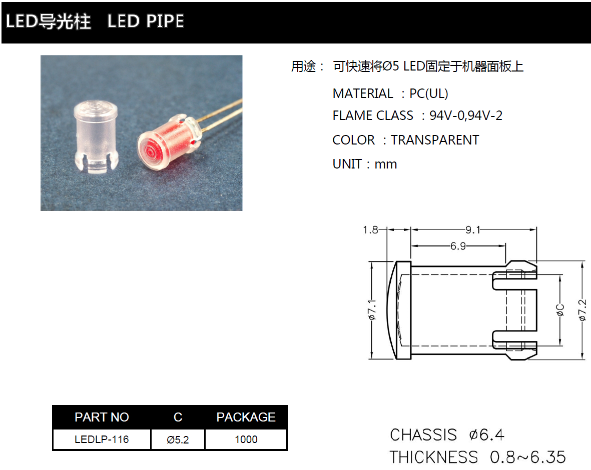 我們主要有產品有LED導光柱,也稱PC導光柱,導光柱,LED導光罩,LED導光帽,Light Pipe,導光蓋我們是PC導光柱生產廠家,LED導光柱批發,透光柱,導光條,導光棒等。