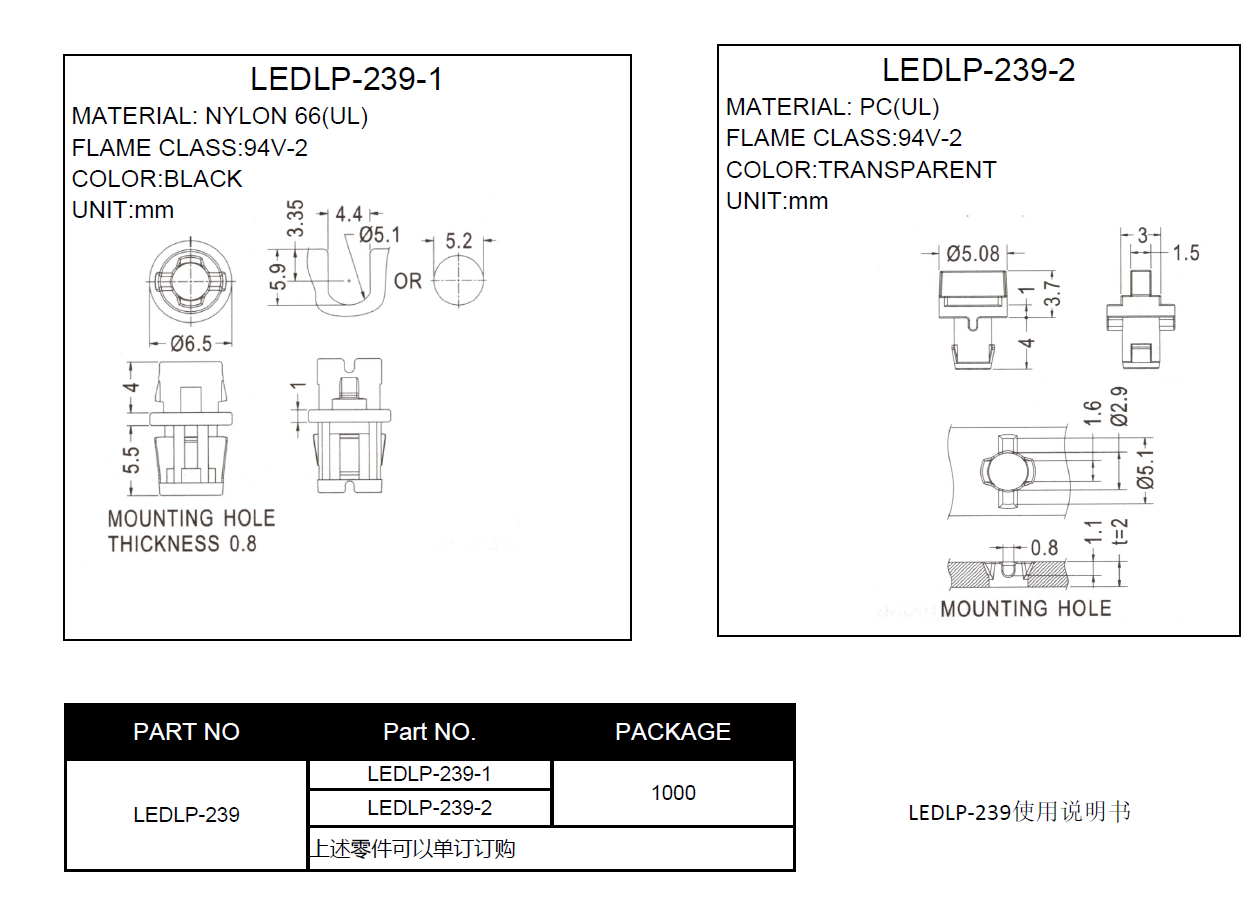 LED導光座LEDLP-239,可快速將LED燈固定在機器面板上,使LED燈導光于機殼面板上,使亮度均勻、柔和