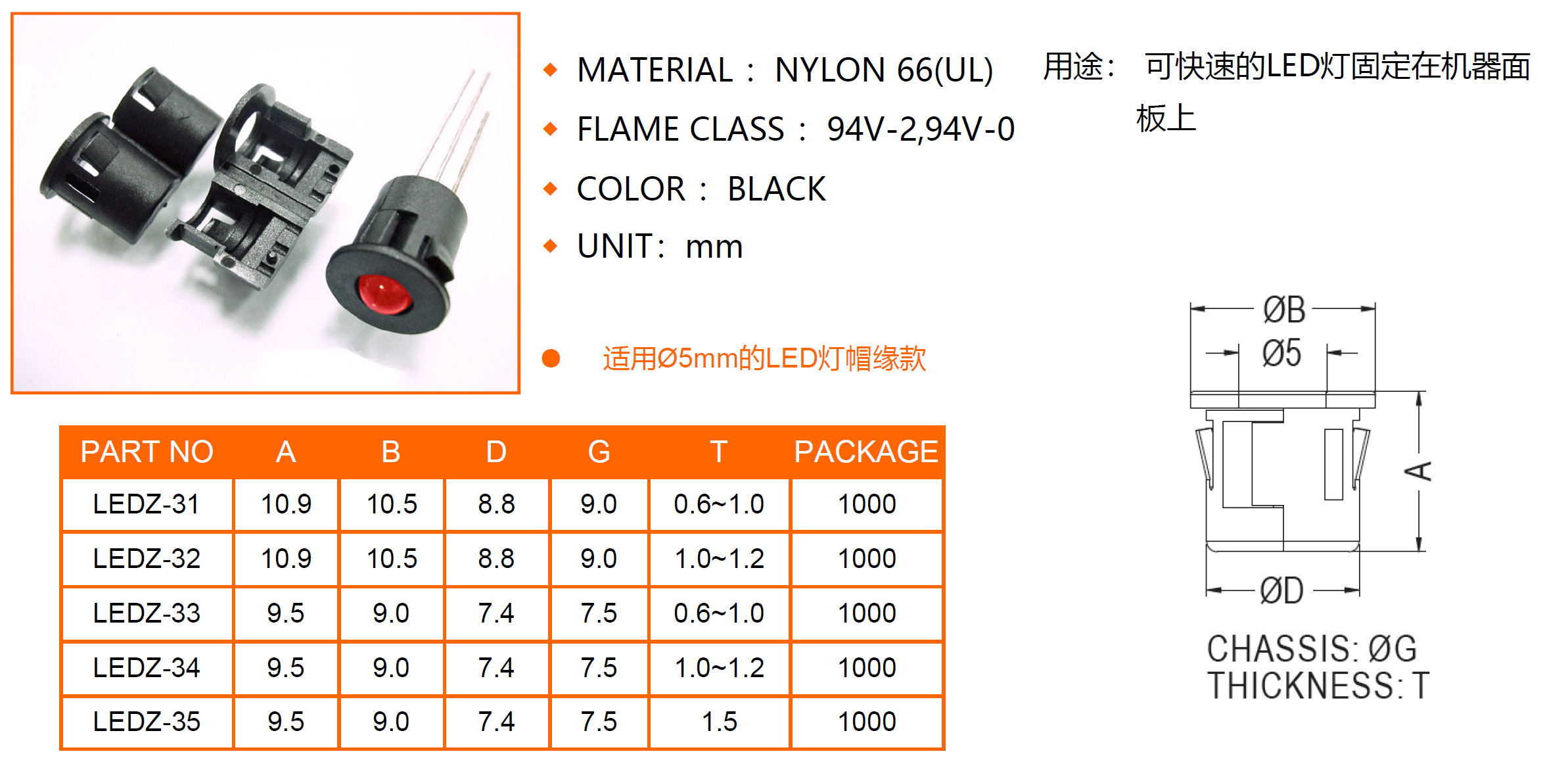LEDZ-31、LEDZ-32、LEDZ-33、LEDZ-34、LEDZ-35?LED Holder