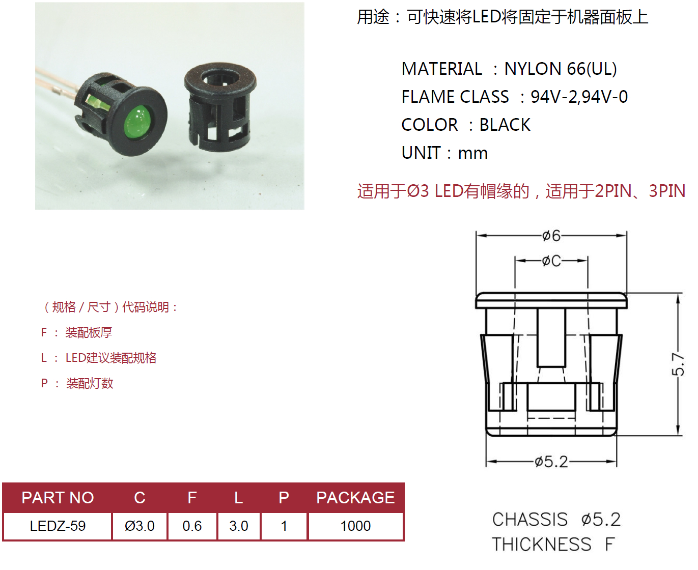 LEDZ-59 LED座 LED燈座 LED固定座 LED Holder