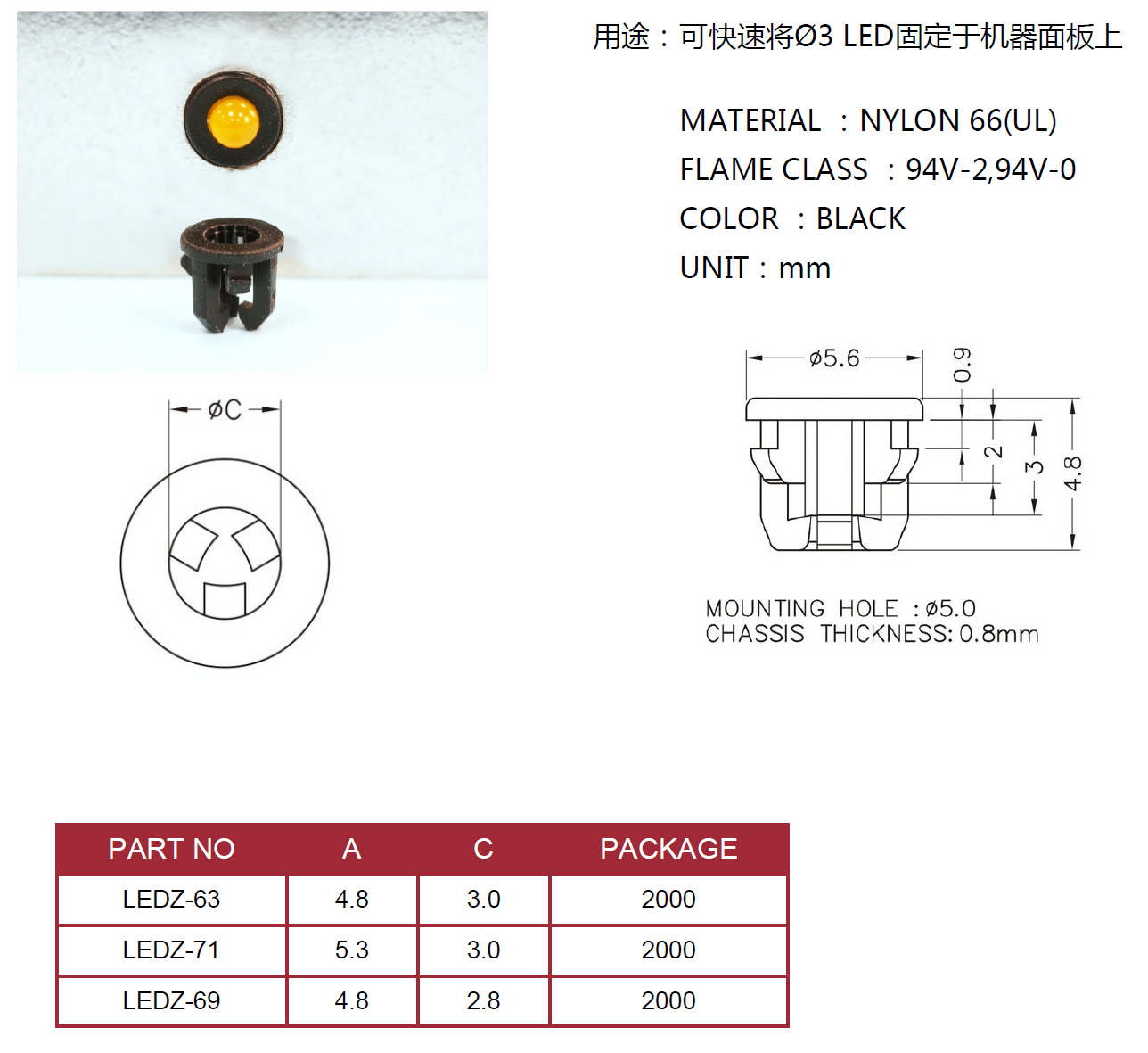 LEDZ-63 LED座 LED燈座 LED固定座 LED Holder