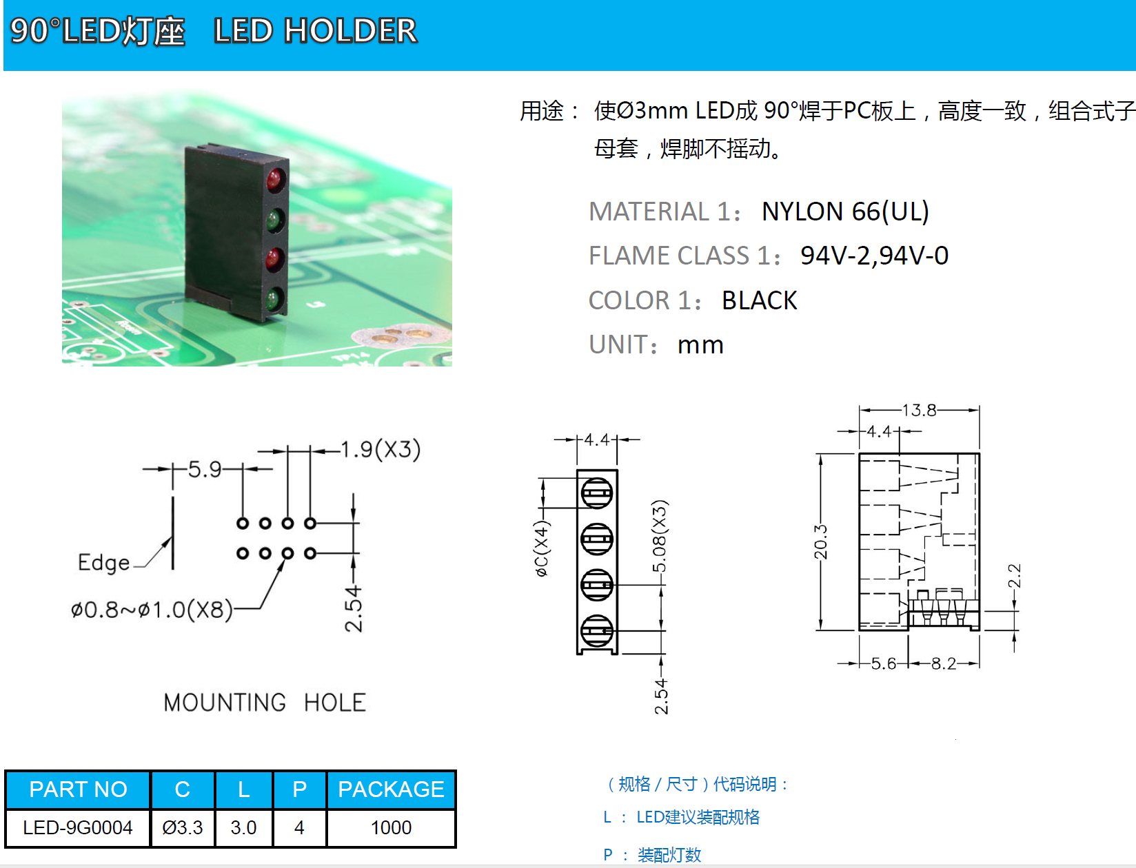 LED-9G0004 90度LED燈座 直角LED座 90°LED燈固定座 90°LED Mount