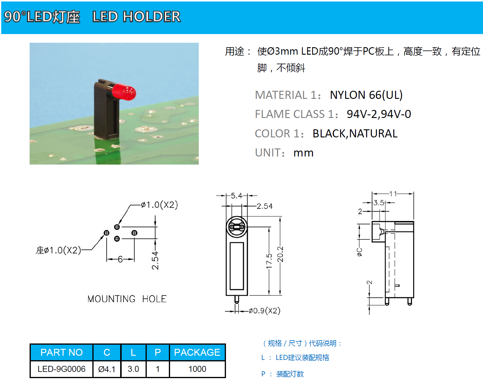 LED-9G0006 90度LED燈座 直角LED座 90°LED燈固定座 90°LED Mount