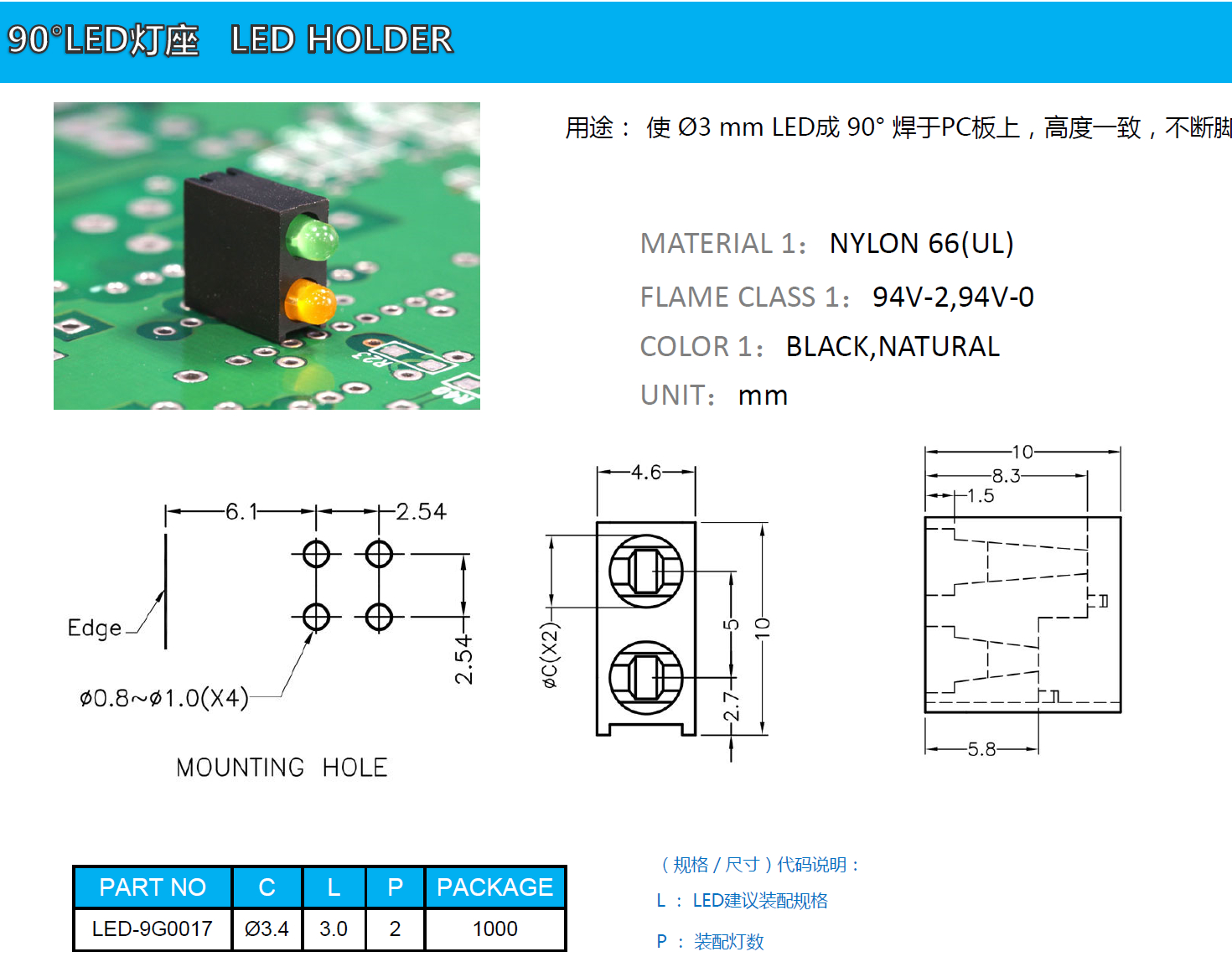 LED-9G0017 90度LED燈座 直角LED座 90°LED燈固定座 90°LED Mount