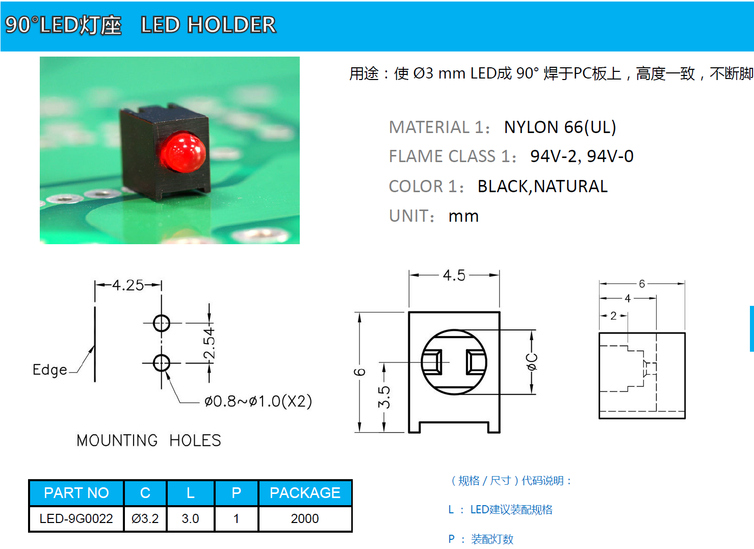 LED-9G0022 90度LED燈座 直角LED座 90°LED燈固定座 90°LED Mount