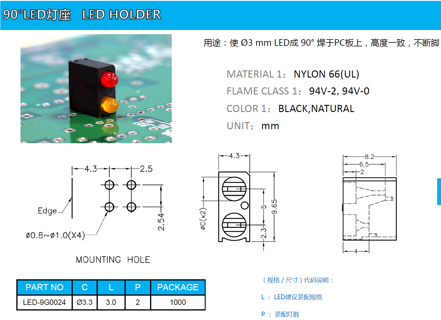 LED-9G0024 90度LED燈座 直角LED座 90°LED燈固定座 90°LED Mount