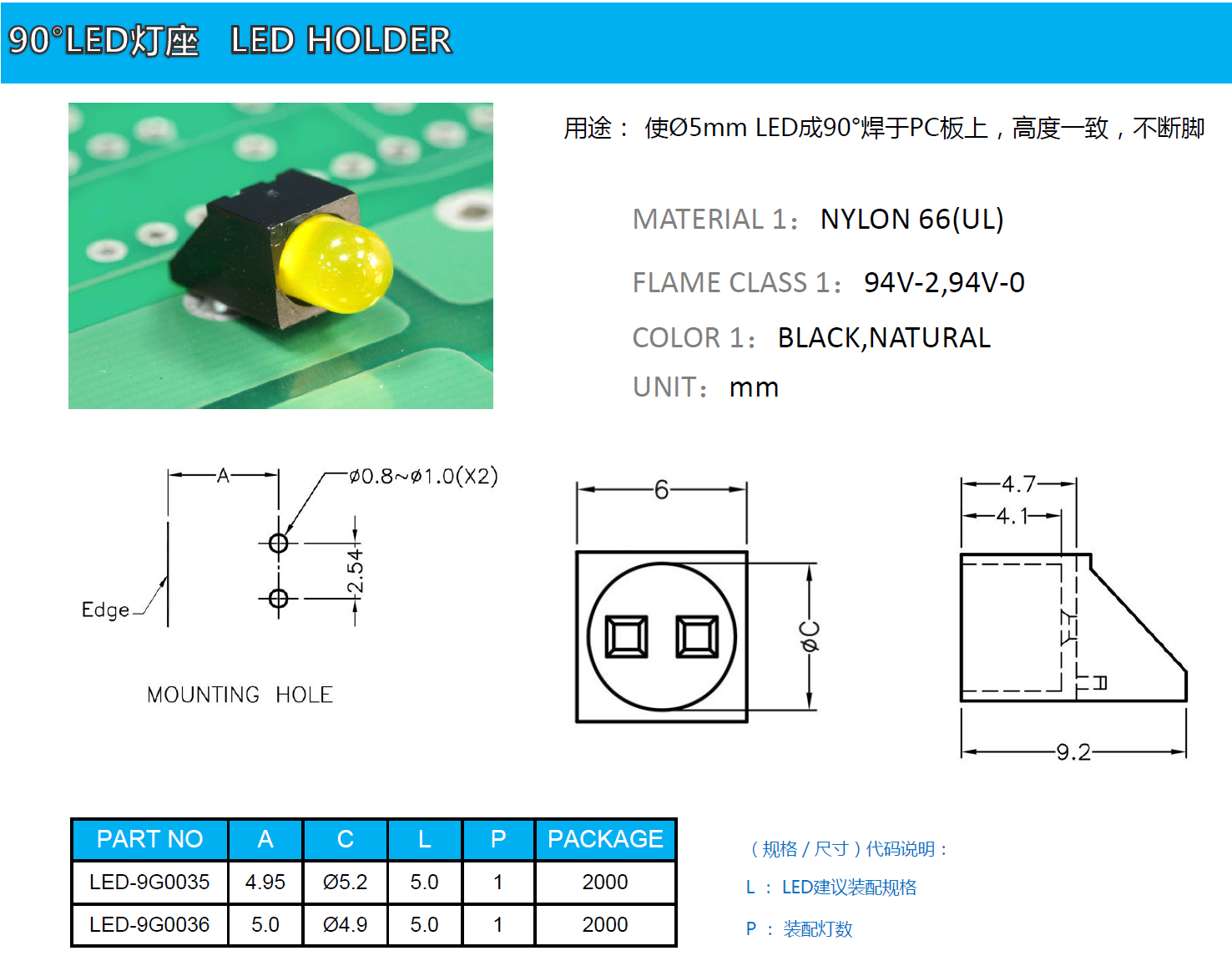 LED-9G0035 90度LED燈座 直角LED座 90°LED燈固定座 90°LED Mount