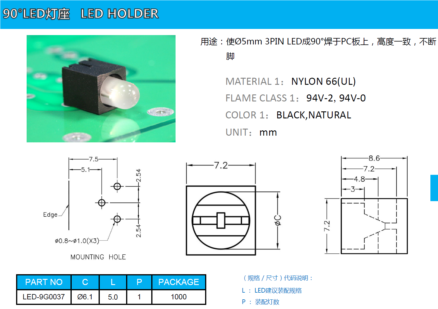 LED-9G0037 90度LED燈座 直角LED座 90°LED燈固定座 90°LED Mount