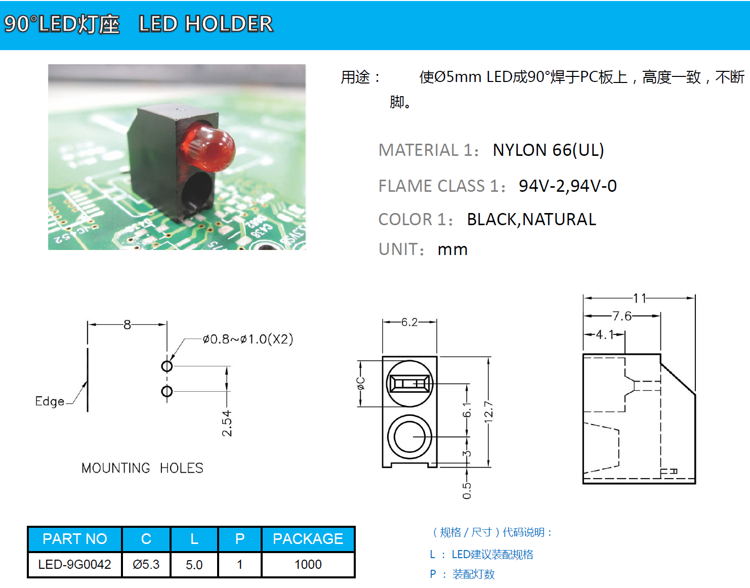 LED-9G0042 90度LED燈座 直角LED座 90°LED燈固定座 90°LED Mount