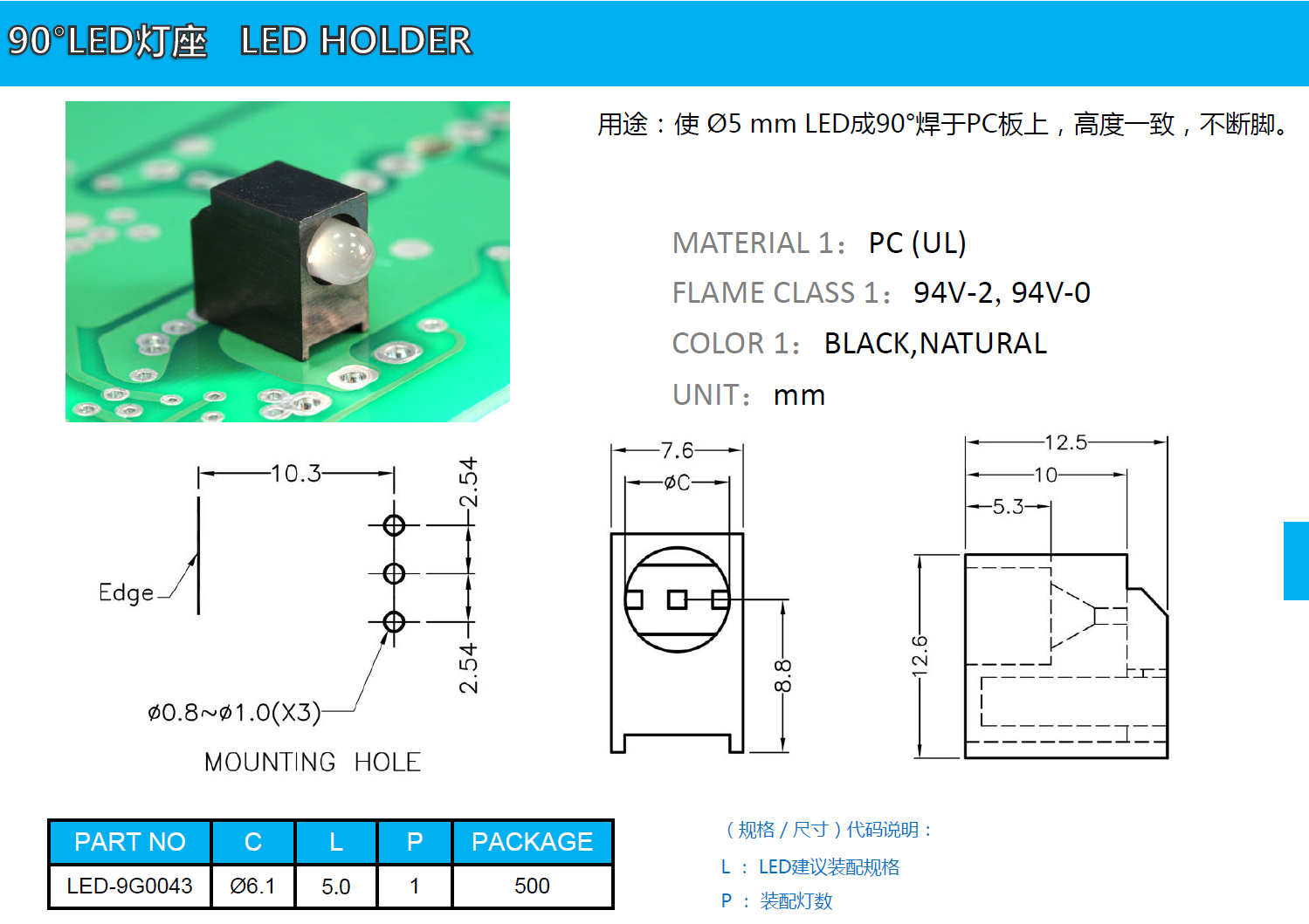 LED-9G0043 90度LED燈座 直角LED座 90°LED燈固定座 90°LED Mount