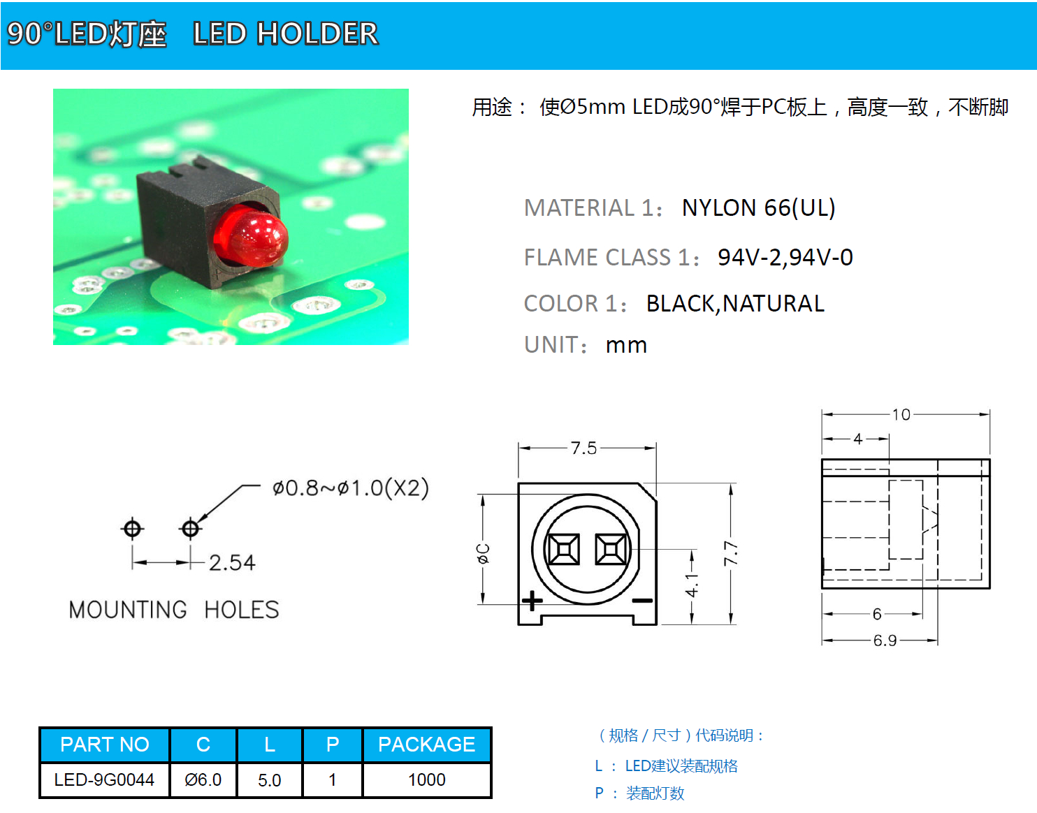 LED-9G0044 90度LED燈座 直角LED座 90°LED燈固定座 90°LED Mount