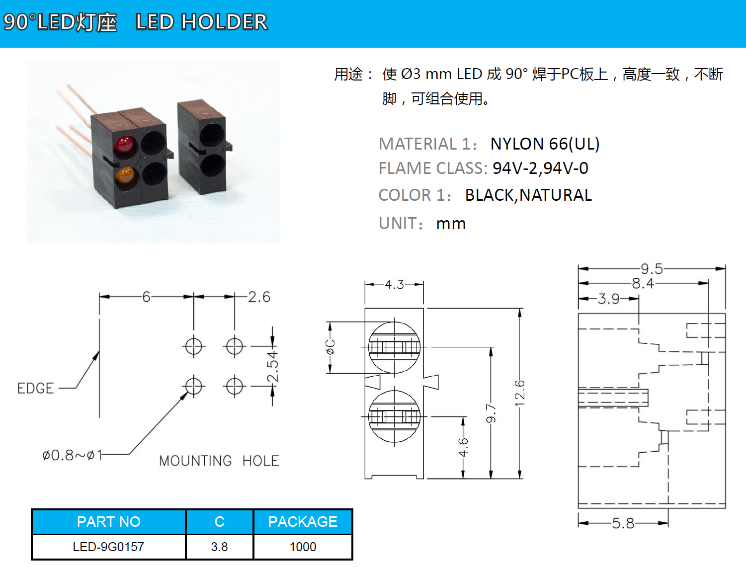 LED-9G0157 90度LED燈座 直角LED座 90°LED燈固定座 90°LED Mount