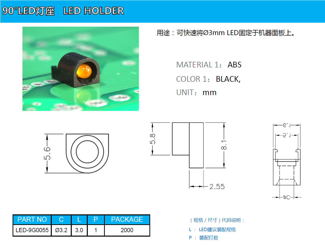 LED-9G0055 90度LED燈座 直角LED座 90°LED燈固定座 90°LED Mount