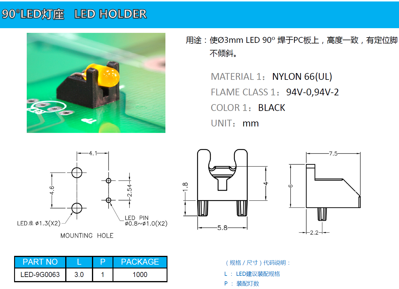 LED-9G0063 90度LED燈座 直角LED座 90°LED燈固定座 90°LED Mount