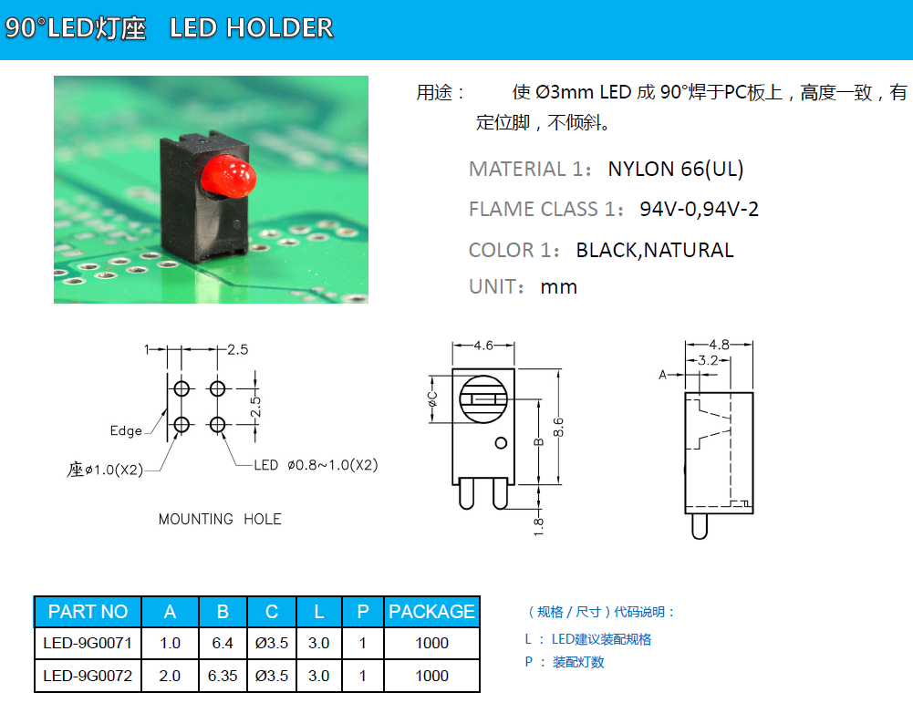 LED-9G0071 90度LED燈座 直角LED座 90°LED燈固定座 90°LED Mount