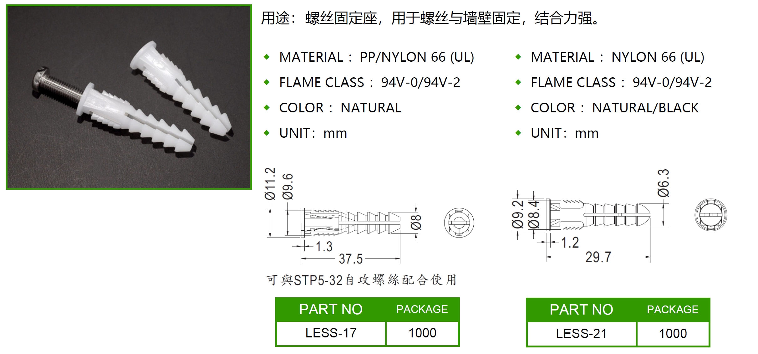 螺絲固定座 LESS-17 LESS-21