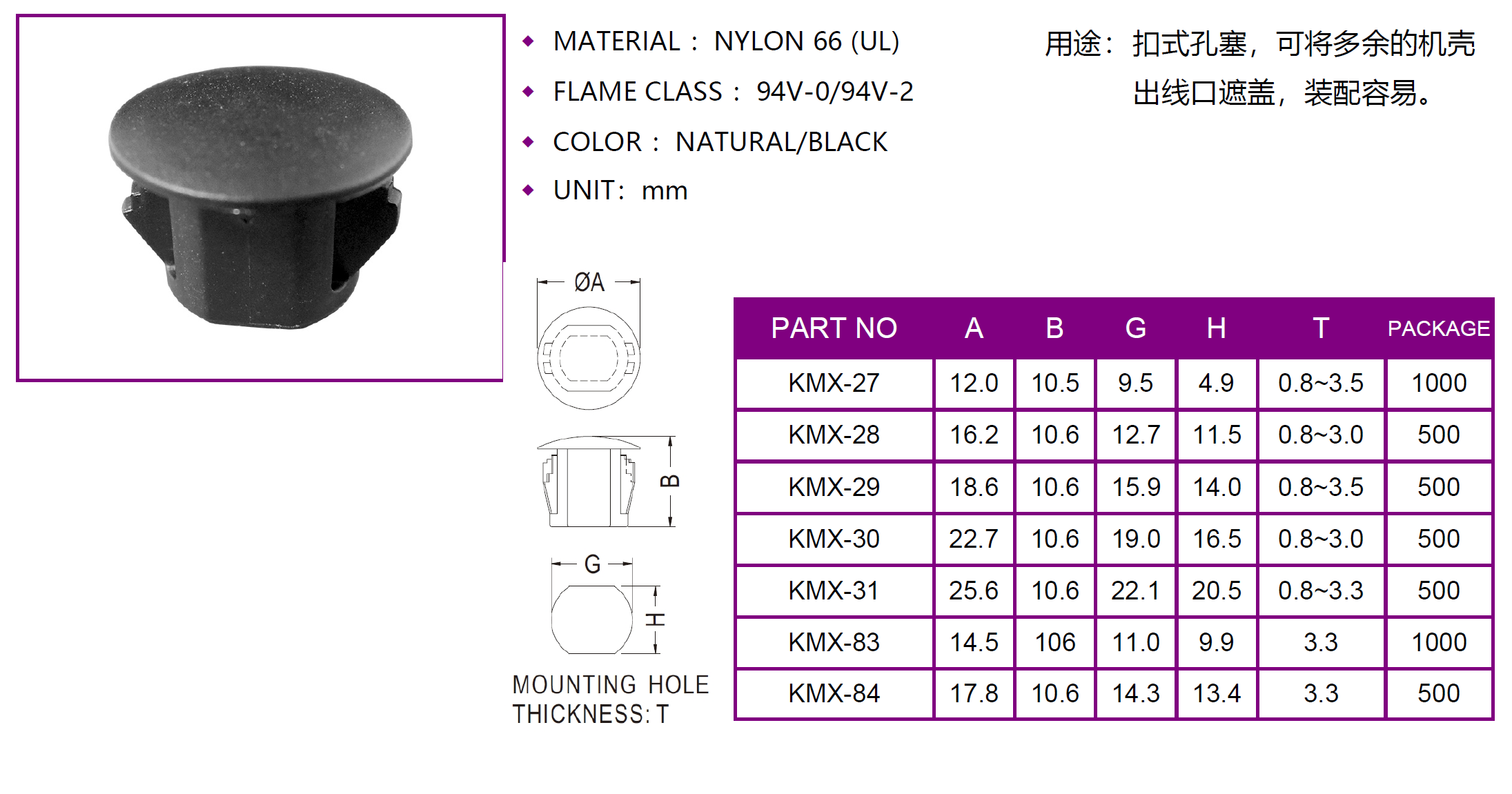 扣式孔塞 KMX-27 KMX-28 KMX…