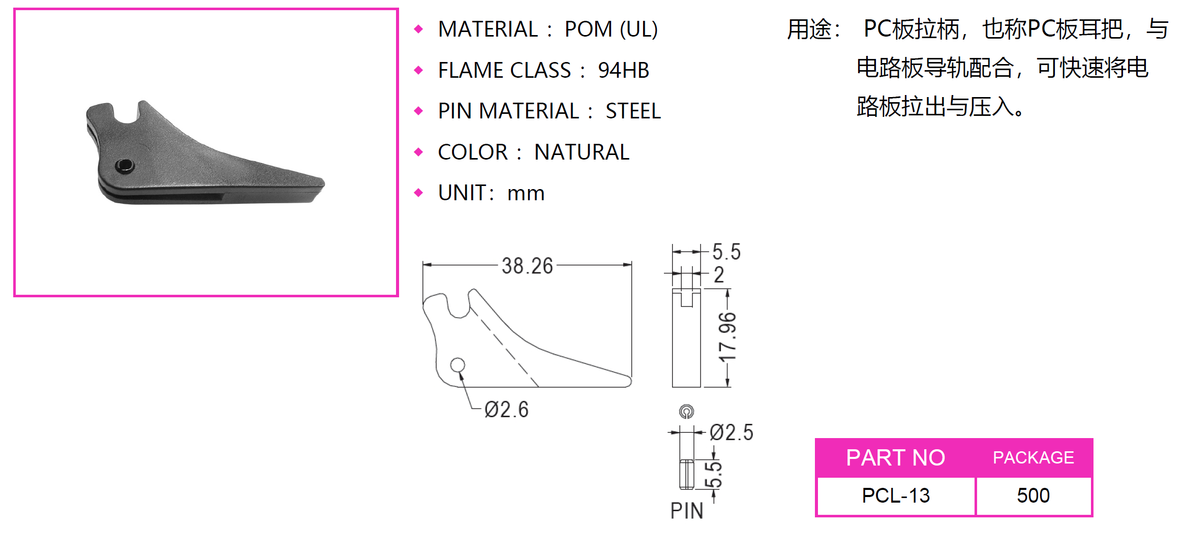 PCL-13?Card Puller?PC板耳把