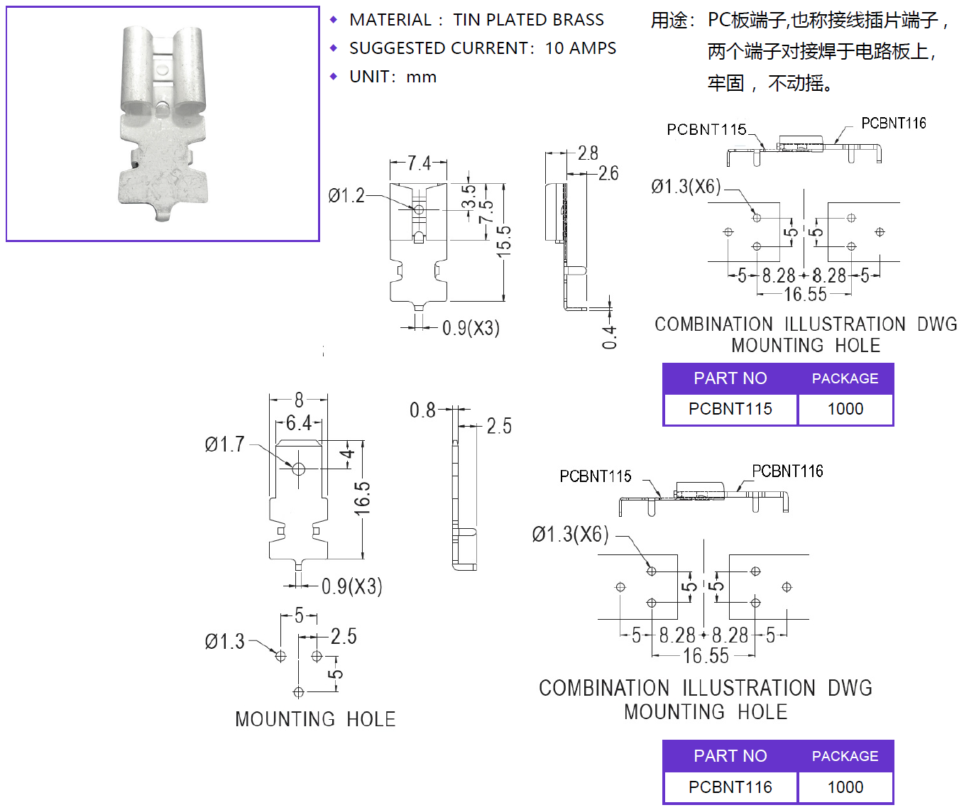 兩個端子對接焊于電路板上,牢固 ,不動搖。