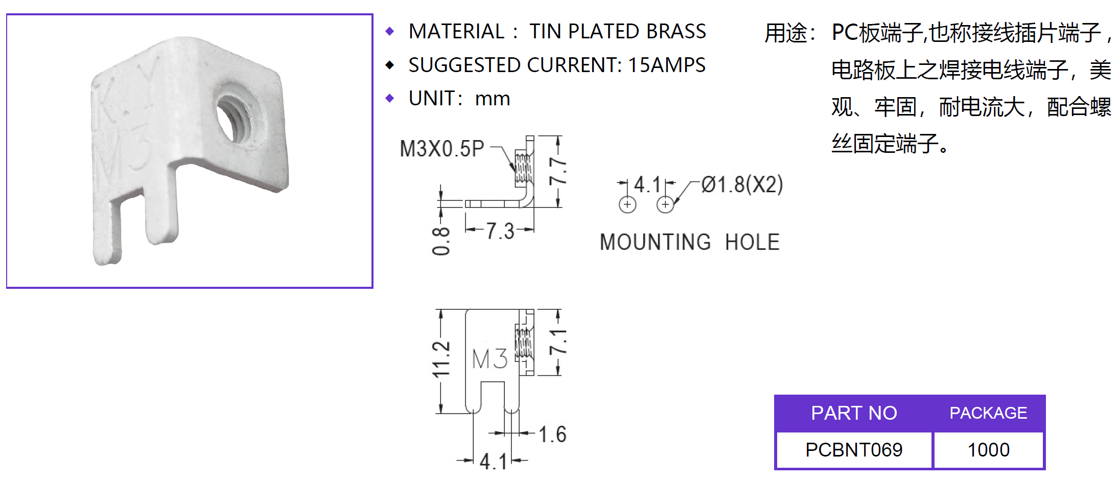 電路板上之焊接電線端子,美觀、牢固,耐電流大,配合螺絲固定端子。