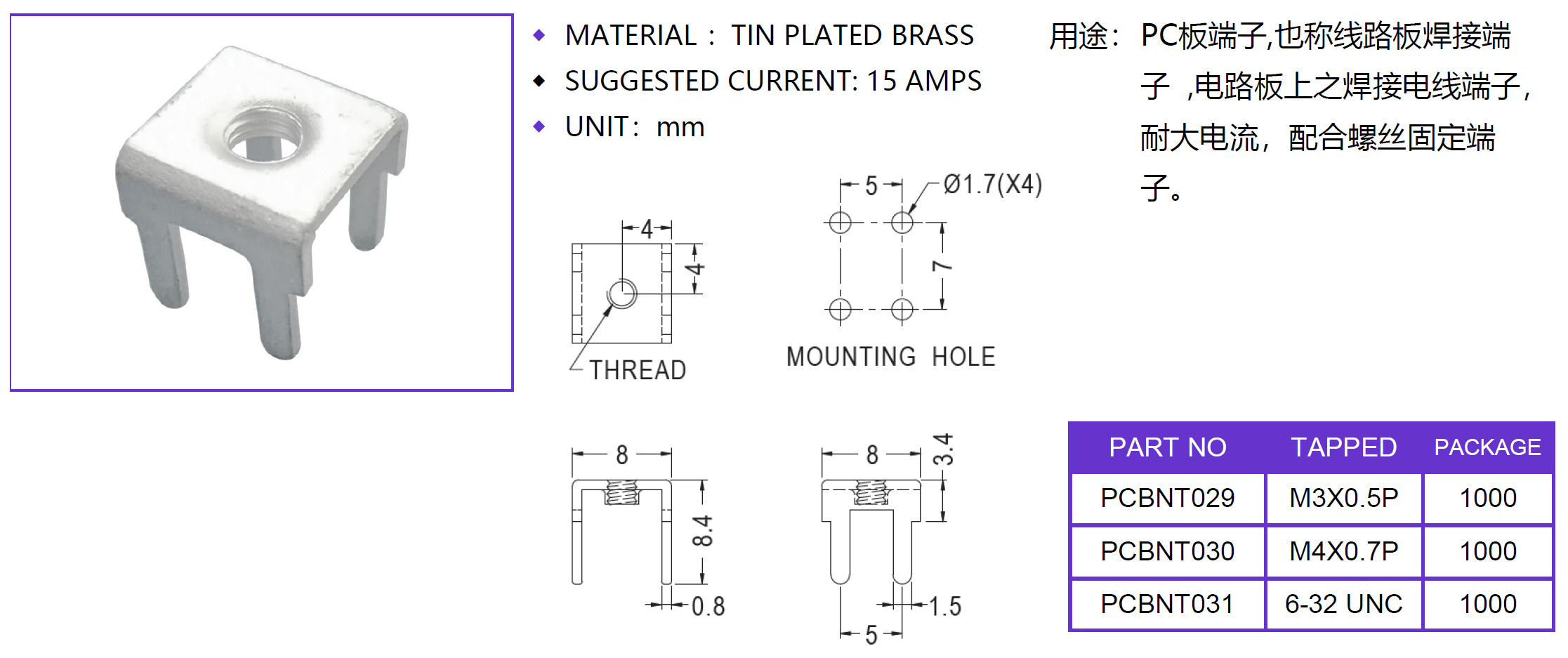 電路板上之焊接電線端子,耐大電流,配合螺絲固定端子。