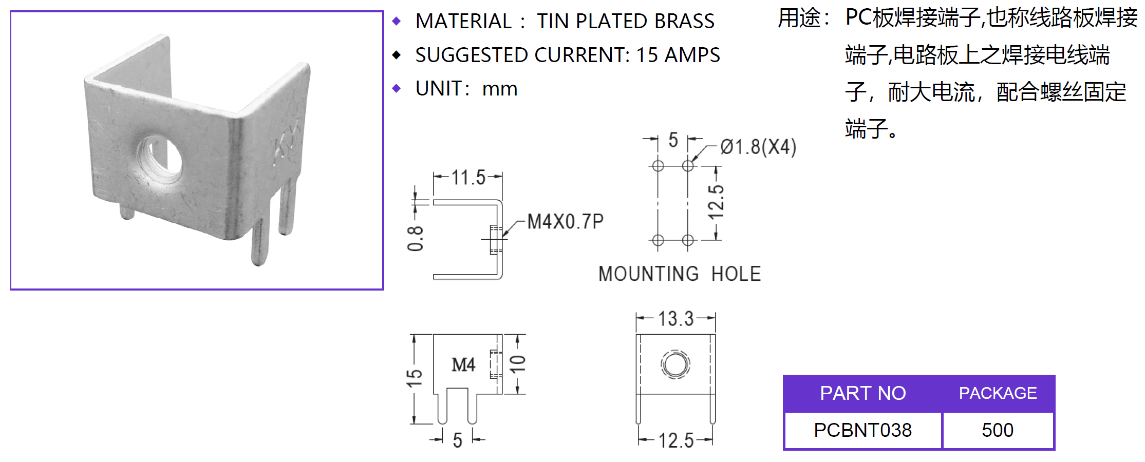 PC板焊接端子,也稱線路板焊接端子 ,