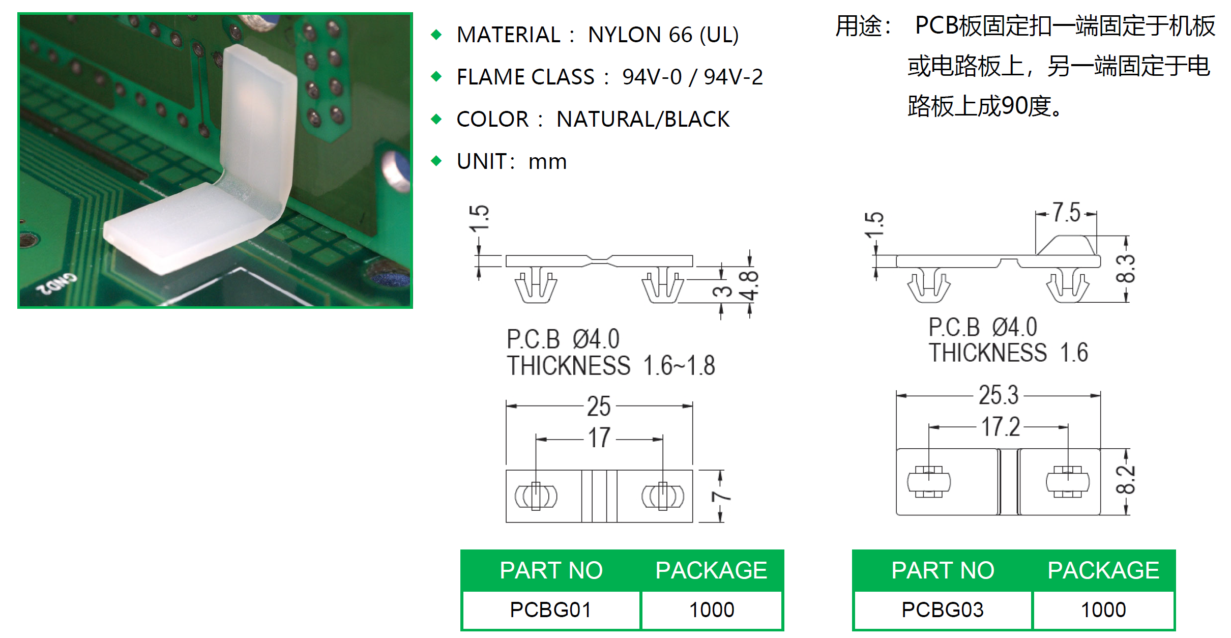一端固定于機板或電路板上,另一端固定于電路板上成90度。