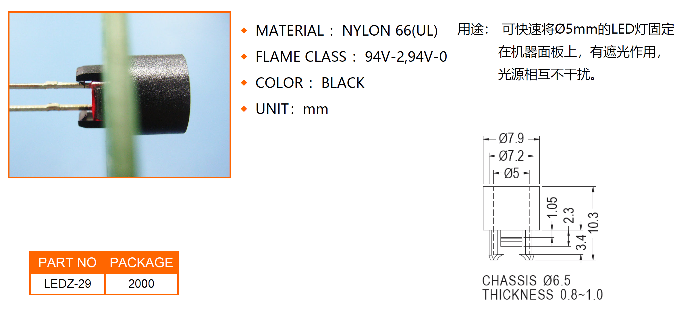 可快速將?5 LED燈固定于機器面板上,有遮光,不干涉。