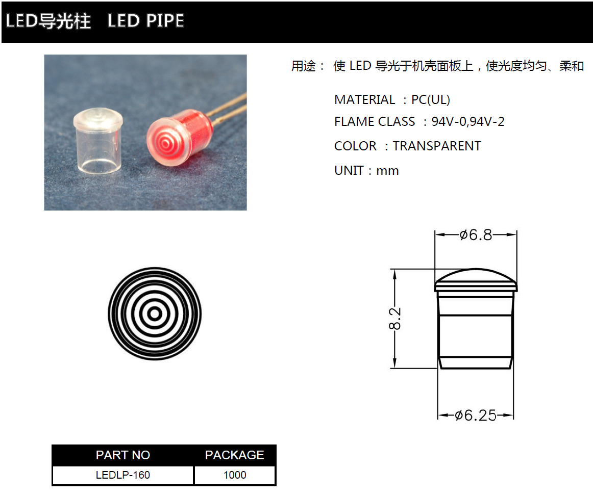 LEDLP-160 LED導(dǎo)光蓋 LED導(dǎo)光柱 LED導(dǎo)光罩 LED導(dǎo)光帽 Lens Cap